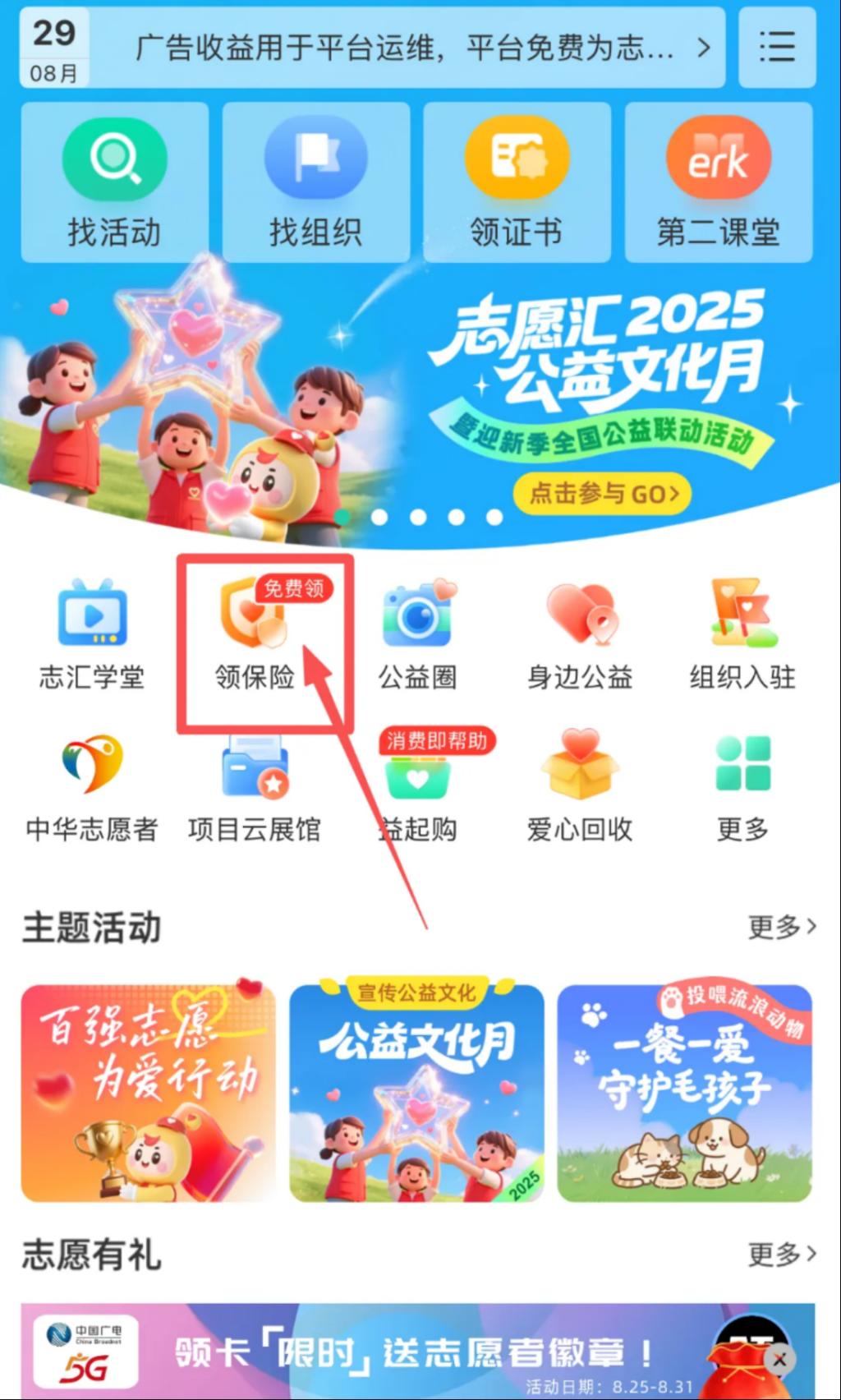 点击首页“领保险”