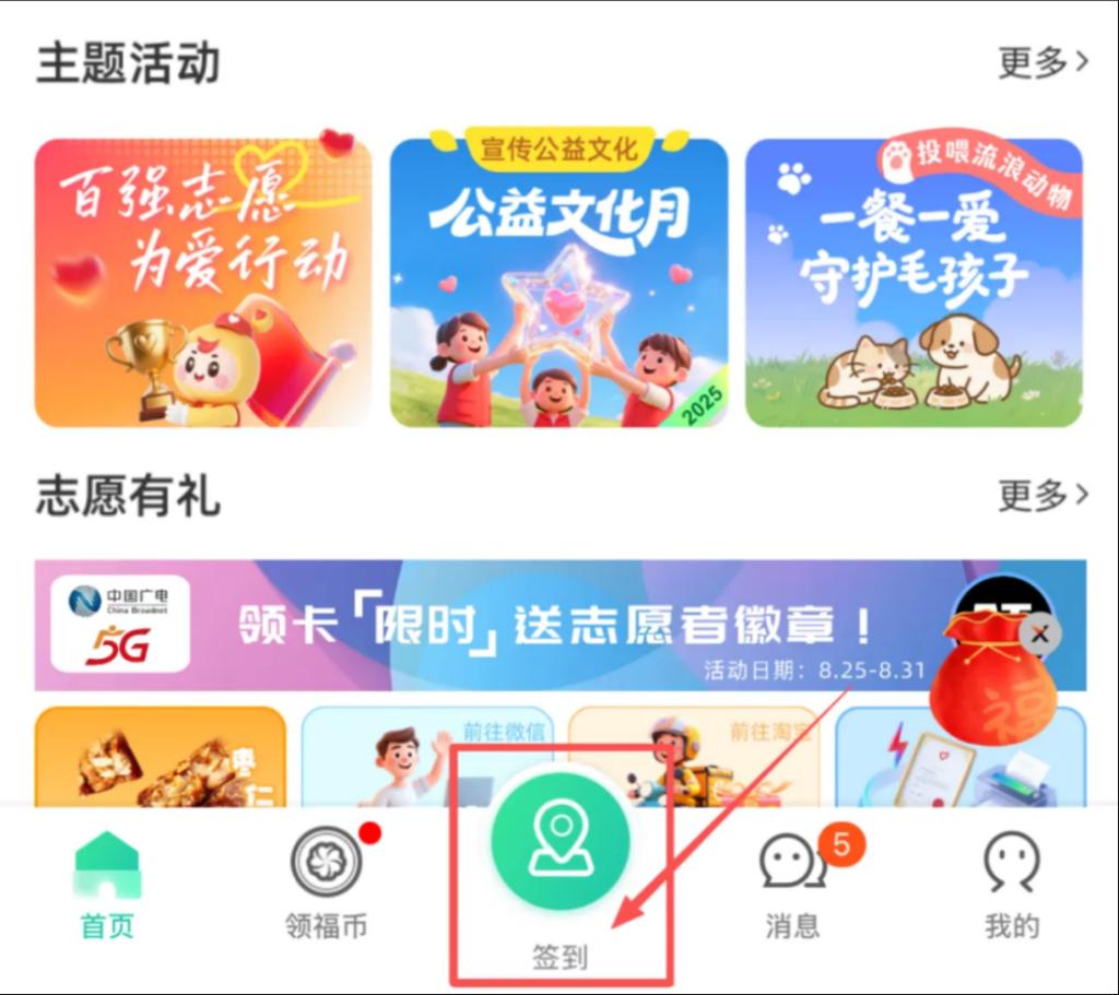 点击首页底部签到按钮,