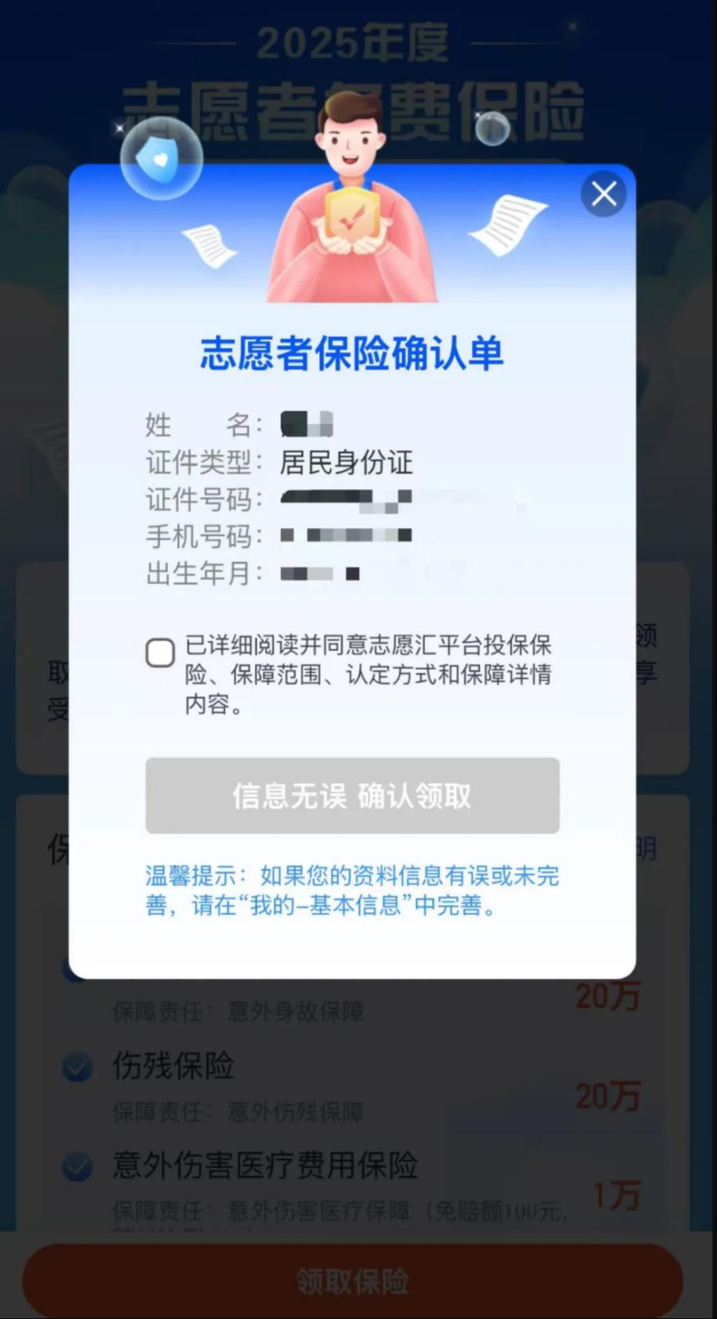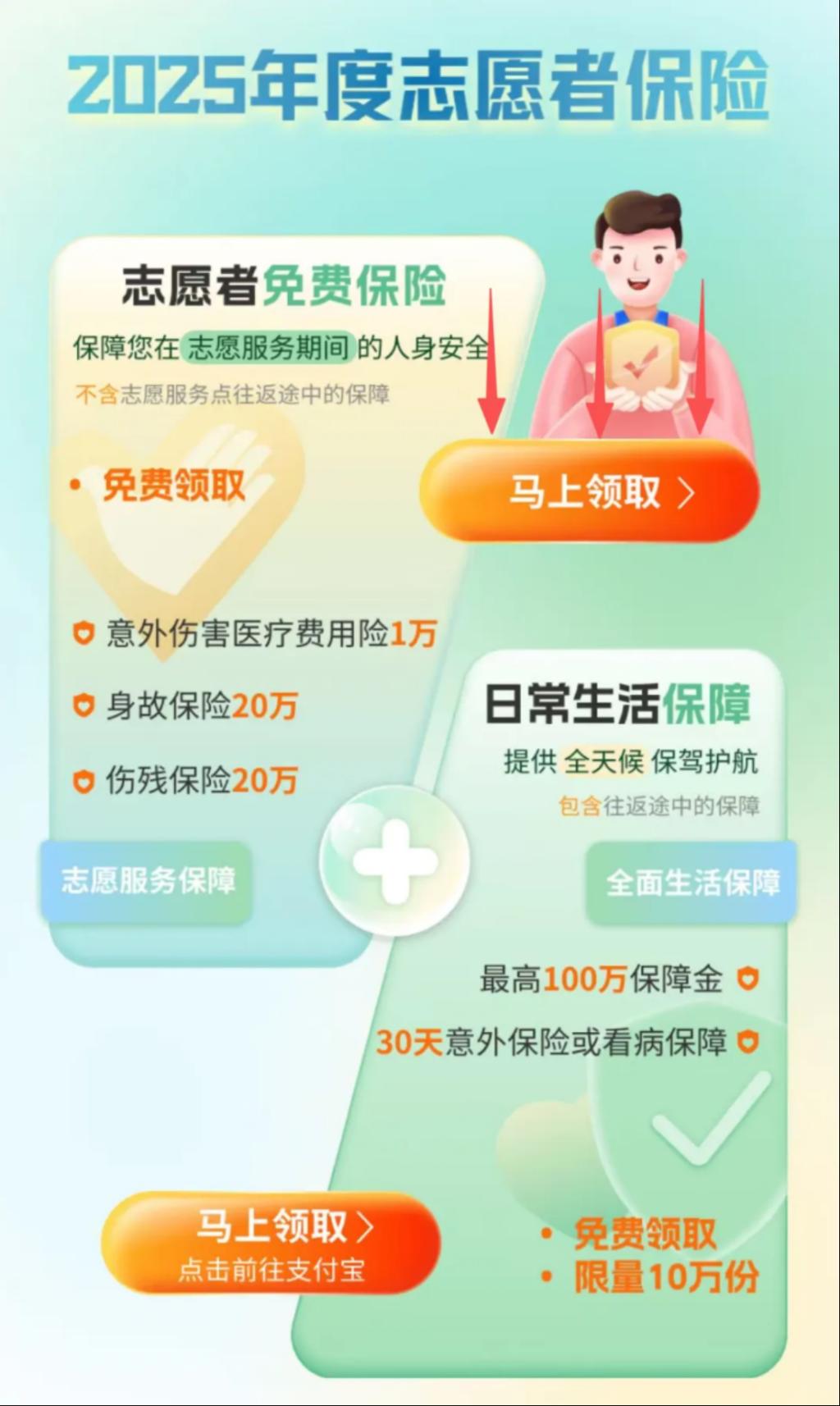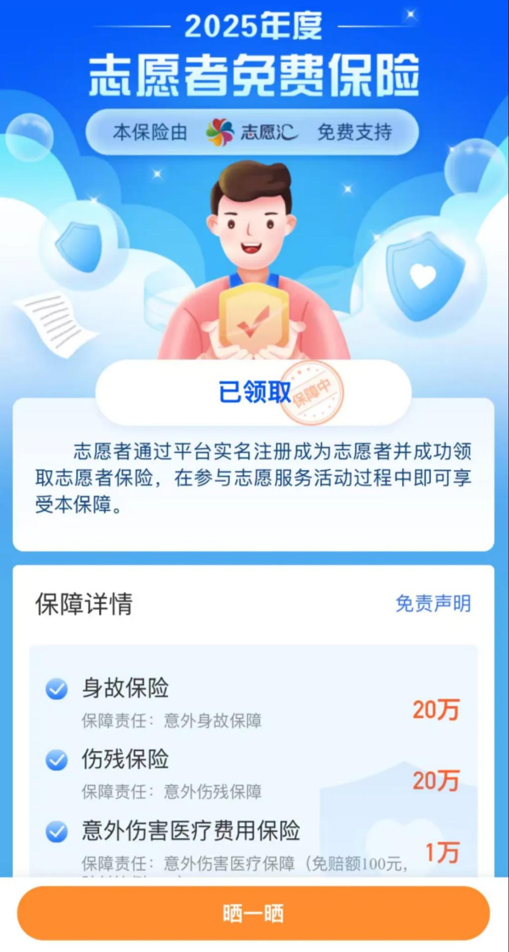 志愿者即可成功领取免费保险一份。