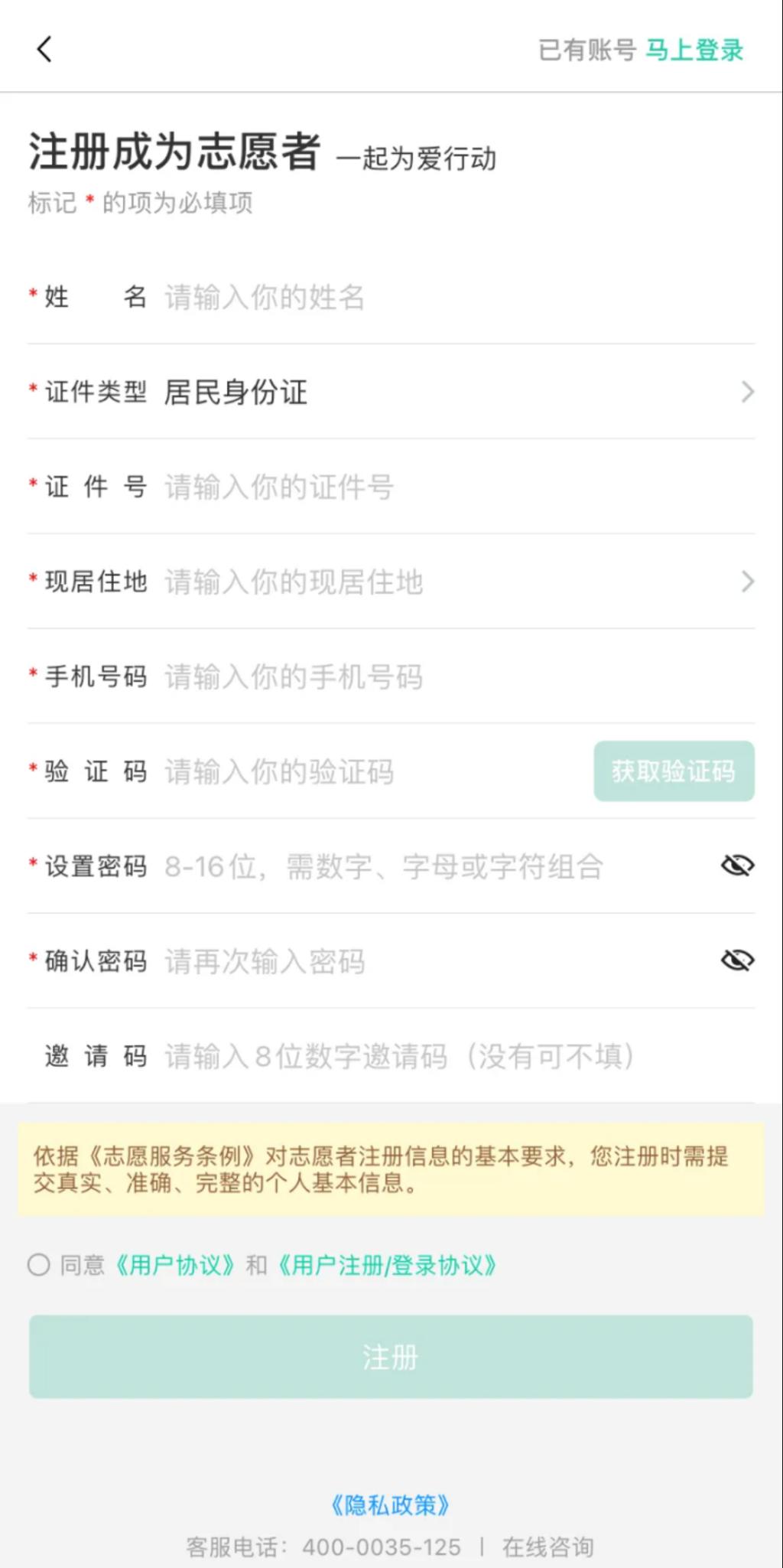 志愿者注册成功后,