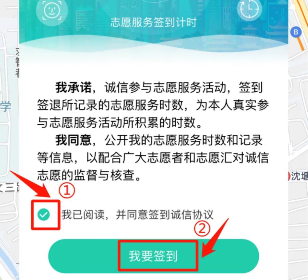签署诚信协议,点击“我要签到”。